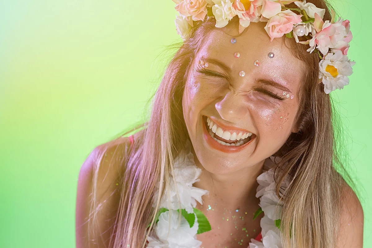 Ein weiterer Trend im Festival Make-up sind auffällige Farben. Deiner Kreativität sind keine Grenzen gesetzt. Spiele mit knalligen Tönen, um einen unvergesslichen Look zu schaffen. Von lebendigen Blau- und Grüntönen bis hin zu satten Pink- und Lila-Nuancen – die Möglichkeiten sind endlos.