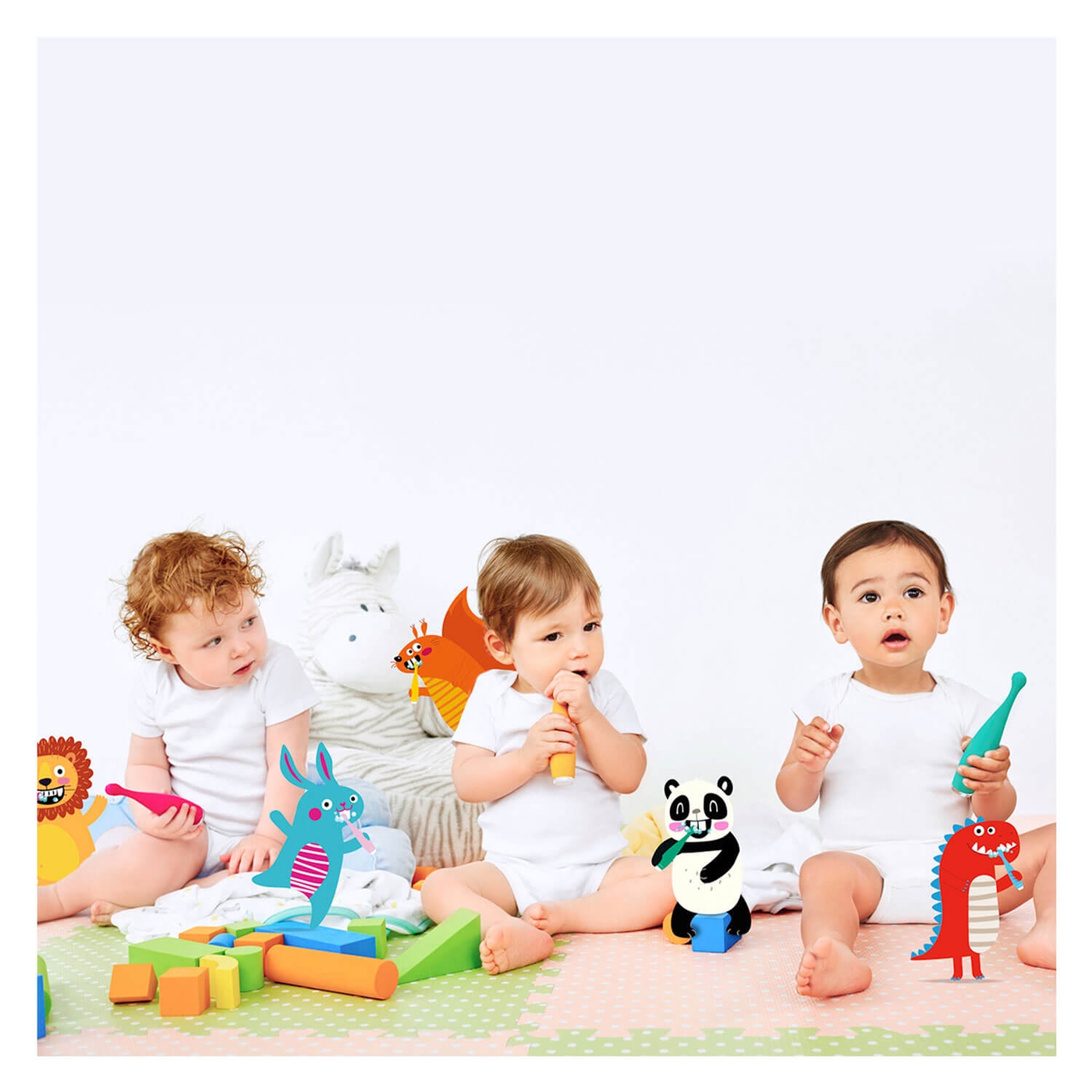 Masse les gencives, élimine les restes de nourriture et apaise les douleurs dentaires. Les pulsations soniques et les poils en silicone doux brossent les dents de lait en douceur. Les visages souriants "Glee & Glum" aident à établir de bonnes habitudes de soins bucco-dentaires.