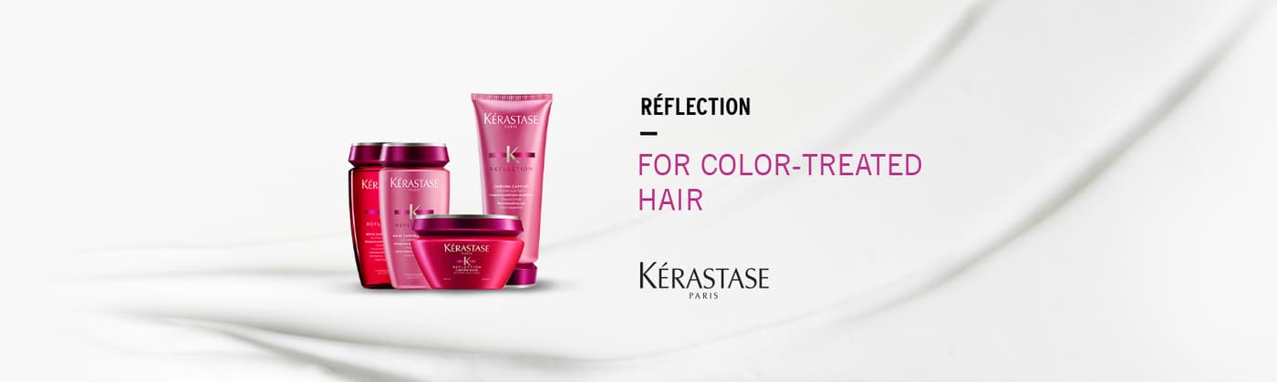 Coloriertes Haar braucht besondere Pflege mit Farbschutz. Die Réflection-Produkte von Kérastase sind eine massgeschneiderte Pflege, die Ihren Haaren genau das gibt, was sie brauchen. Kérastase weiss, dass Colorationen und Tönungen das Haar sensibler machen. Ihre Haare werden durch den chemischen Vorgang geschwächt. Ihre Haarfarbe verblasst dadurch schneller und zieht einen Glanzverlust nach sich.