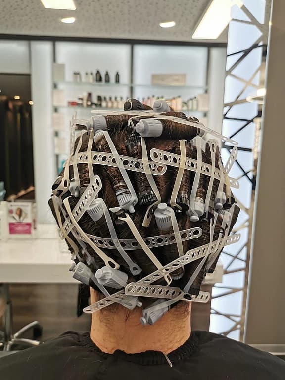 La longueur des cheveux joue également un rôle. Chez les hommes en particulier, il faut une longueur pour pouvoir enrouler les rouleaux. La longueur, mais aussi la qualité.