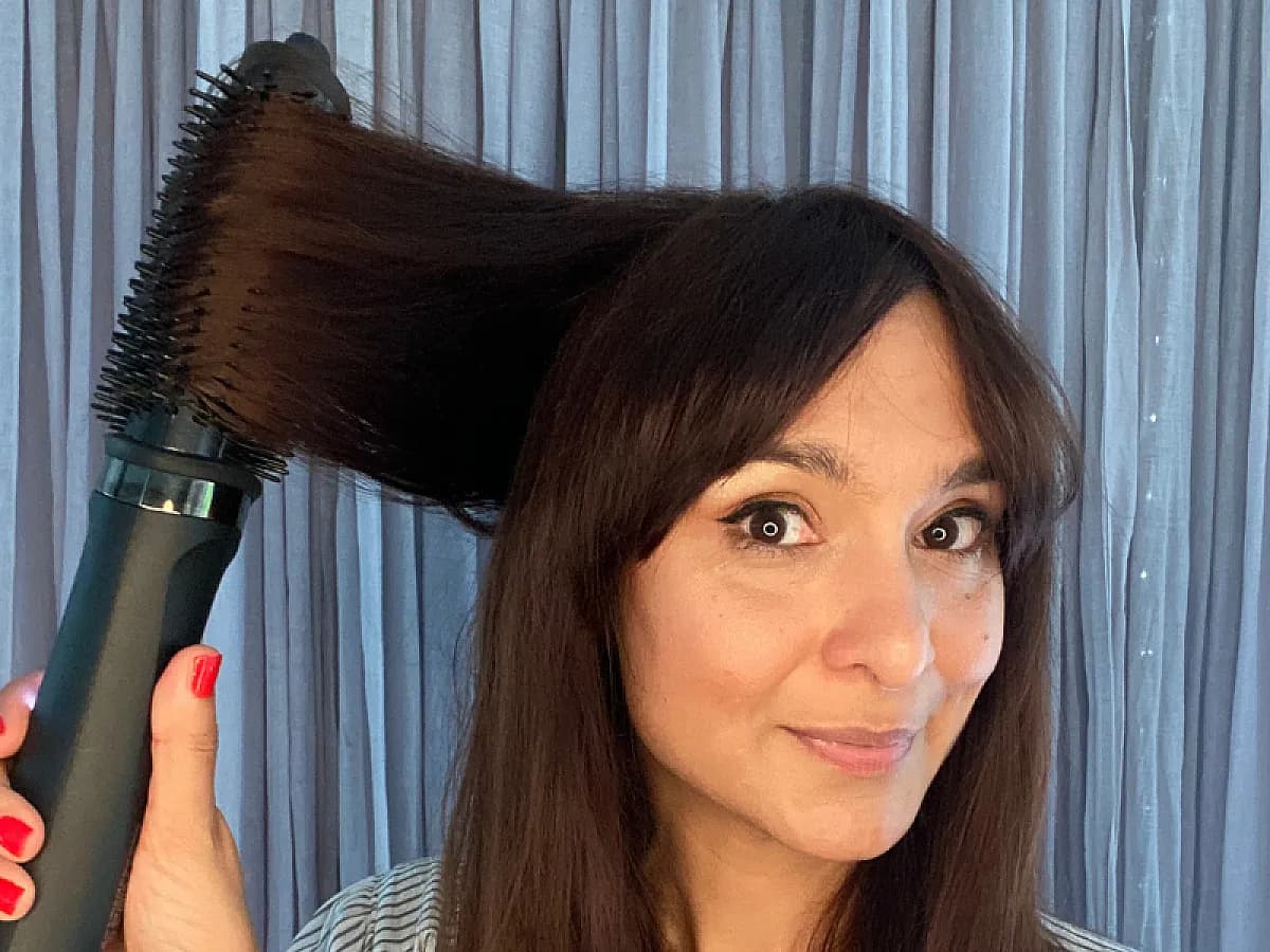 Das Video zeigt dir im Schnelldurchlauf, wie ich die Duet Blowdry Brush verwende. Dort siehst du auch, wie jede Strähne mehrmals entlangfahre, um sie zu trocknen und gleichzeitig in Form zu bringen. Du kannst die Duet Blowdry Brush auch wirklich bis zum Haaransatz eindrehen. Sie ist nicht zu heiss.