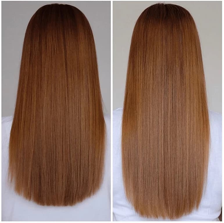 Für stark strapaziertes und trockenes Haar ist Hydrate.Me.Rinse geeignet. Es soll für weniger Spliss sorgen, Glanz verleihen, glätten und ebenso feuchtigkeitsspendend sein. Bereits beim Auswaschen merke ich, wie sich meine Haare ‚satter‘ anfühlen, sodass ich zu Beginn der Testphase jeweils sogar den Eindruck hatte, dass ich für den Conditioner länger brauche, um ihn auszuwaschen (was aber nicht der Fall ist). Vor allem nach der Verwendung des Hydrate.Me.Rinse ist deutlich spürbar, dass meine Haare nicht mehr so trocken, sondern viel weicher und geschmeidiger sind. Kämmen konnte ich sie schon immer sehr gut, jedoch sind sie viel weniger brüchig. Wie ich das sehe? Ganz einfach mit einem kleinen Trick: