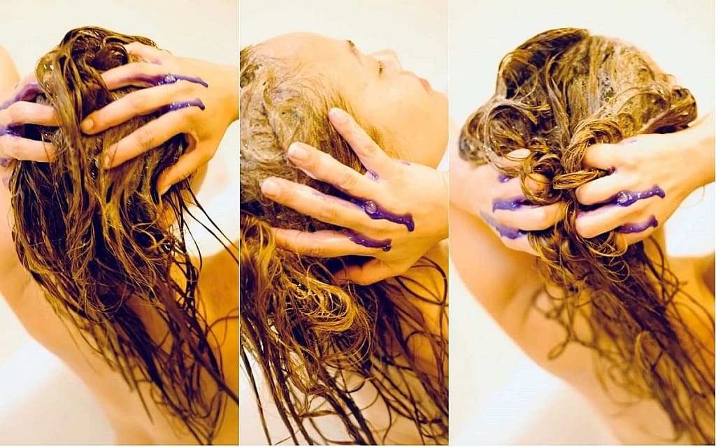 Wie üblich: Die Haare gründlich mit dem Blonde.Angel.Wash Shampoo waschen und anschliessend das Blonde.Angel Treatment einmassieren, kurz einwirken lassen und herauswaschen.