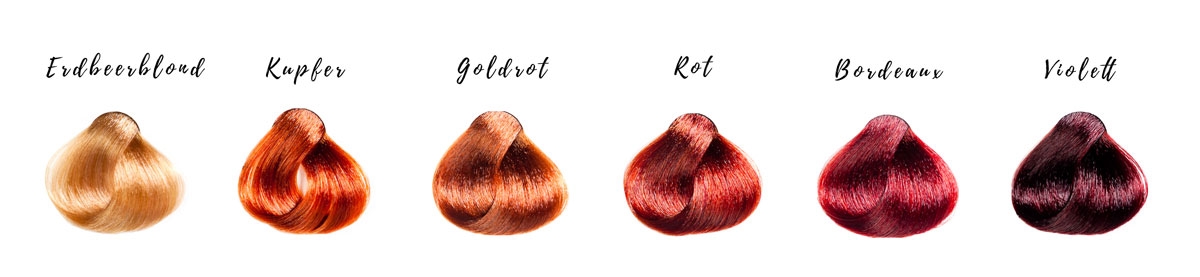 Bei heller Haut mit einem Pfirsich-Unterton, sind helle Rottöne, wie Erdbeerblond, Kupfer, Goldrot ideal. Bei einem bläulichen Teint, kann gerne zu stärkeren Haarfarben gegriffen werden wie zum Beispiel, klassisches Rot, Bordeaux oder auch Violett.